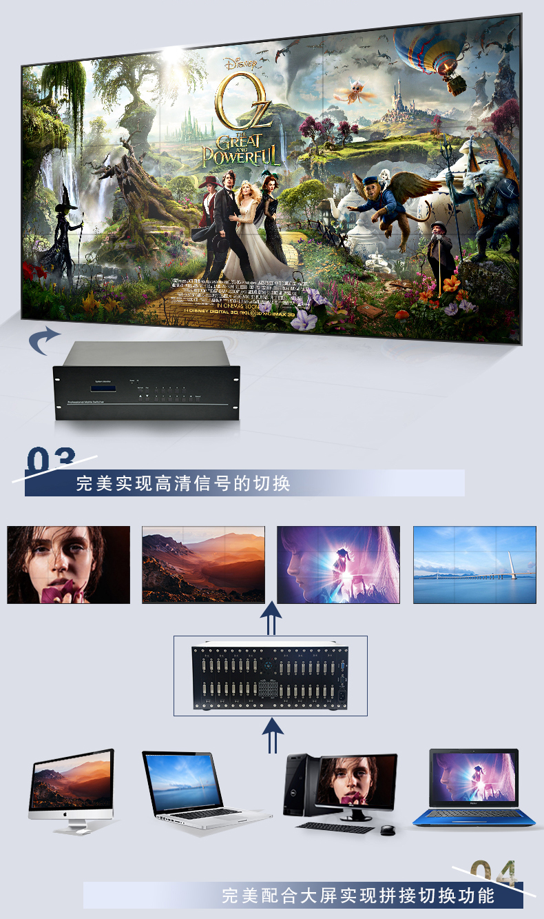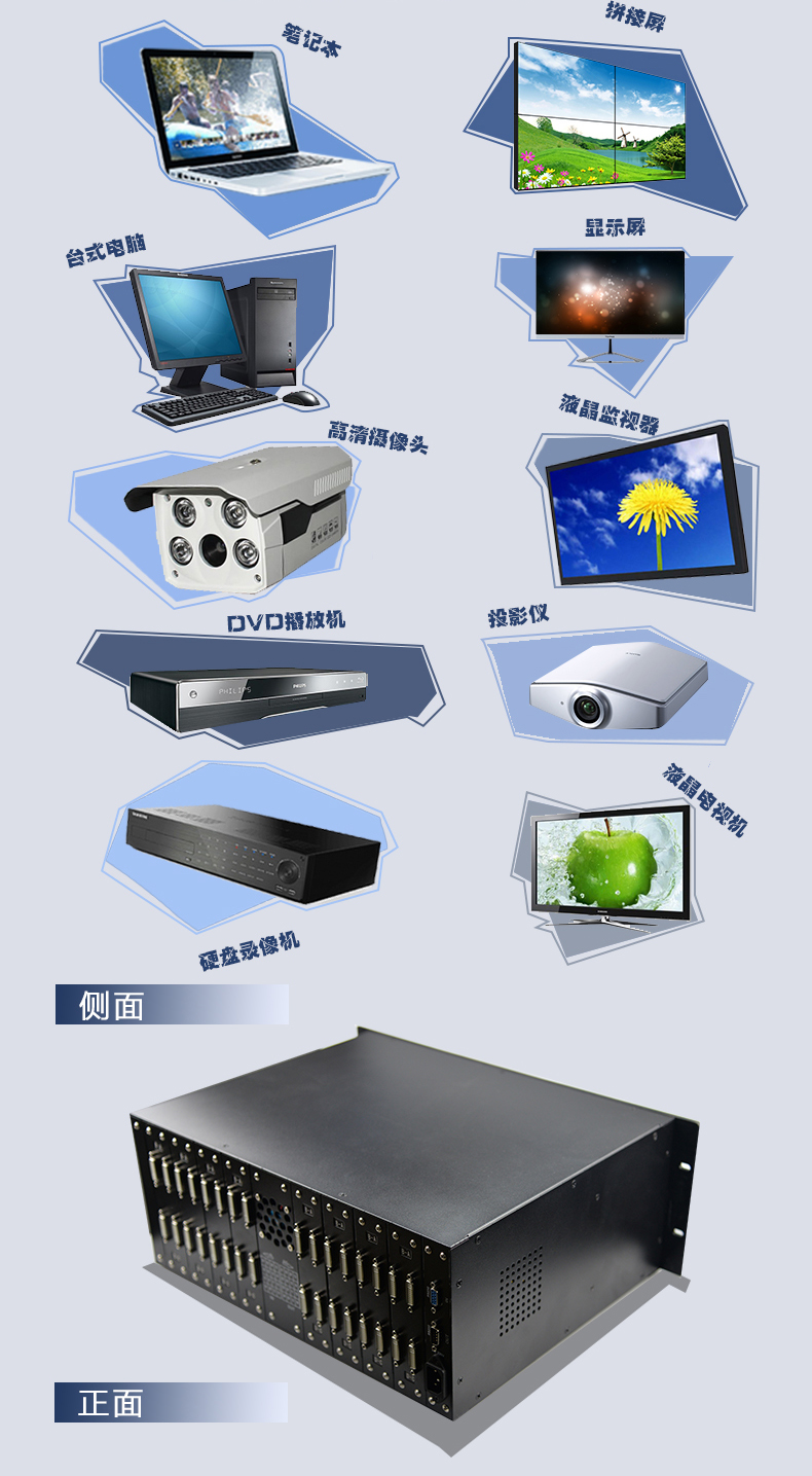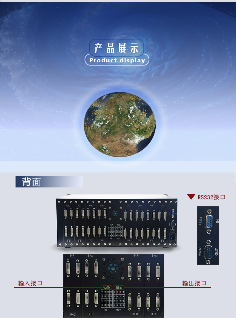 輸入路數:4路,8路,12路,16路,24路,32路,36路,46路,48路,64進;輸出路數:4出,8出,12出,16出,24出,32出,36出,45出,48出,64出,128輸出DVI矩陣切換器